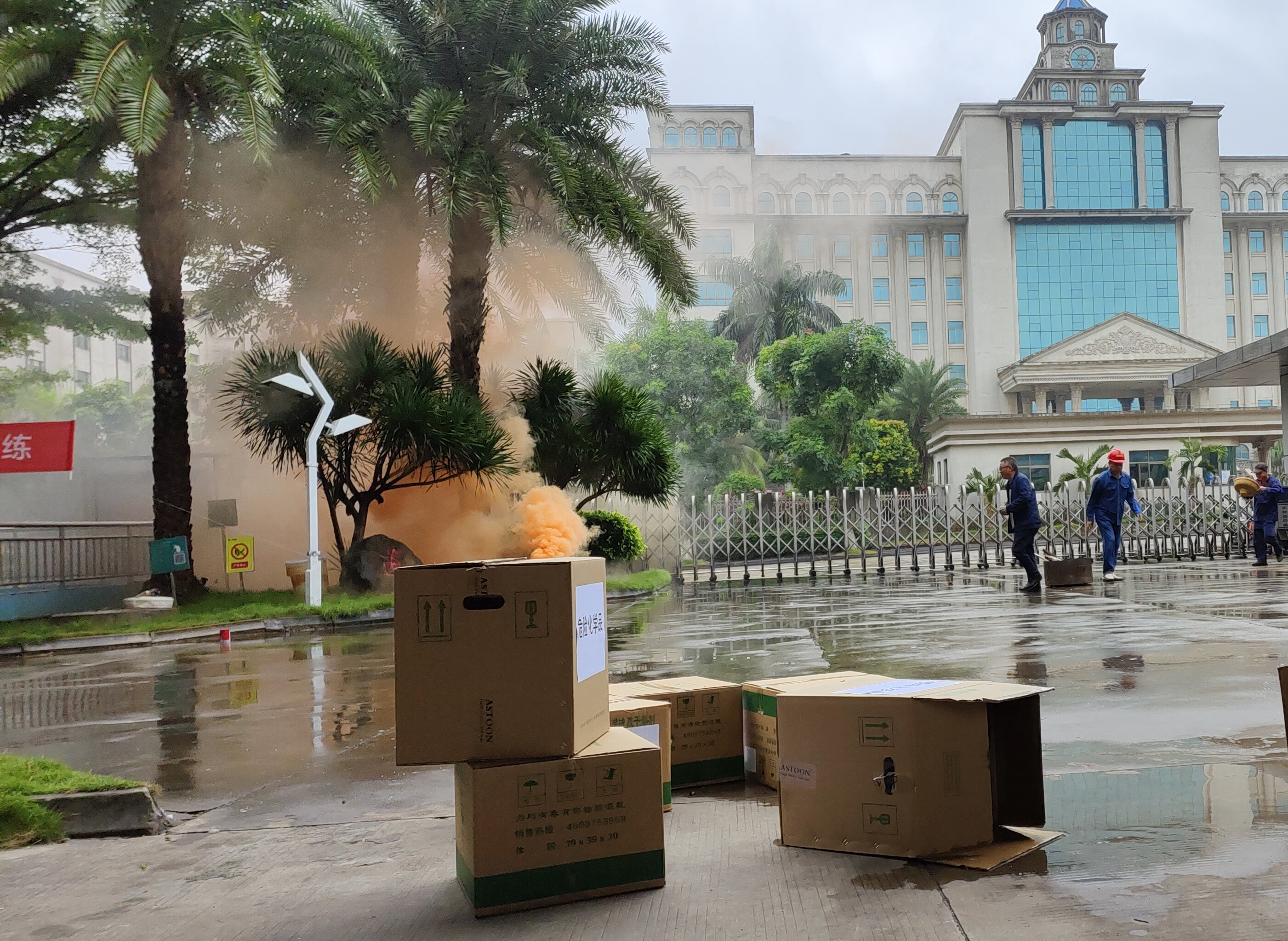 員工使用滅火器撲滅著火點